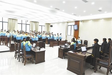 伴隨著“小法官”手中的法槌落下,一場庭審體驗(yàn)活動(dòng)正式開始。在法庭干警的指導(dǎo)下,8名學(xué)生“一秒入戲”,從宣讀法庭紀(jì)律、核對(duì)當(dāng)事人身份,到法庭調(diào)查、舉證質(zhì)證、法庭辯論,整個(gè)庭審程序嚴(yán)謹(jǐn)規(guī)范、秩序井然。