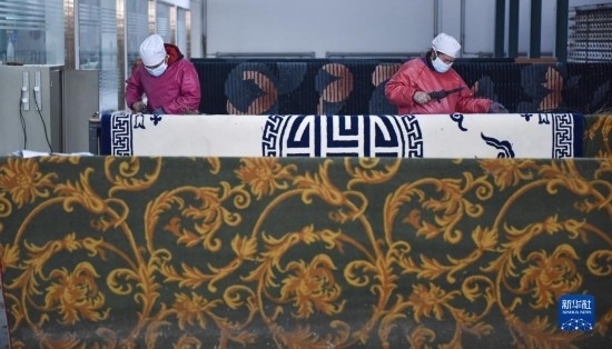 隨著旅游業(yè)復蘇,藏毯需求量增加。位于青海省西寧市的圣源地毯集團有限公司加緊趕制款式精美的藏毯,確保訂單按時交付。
