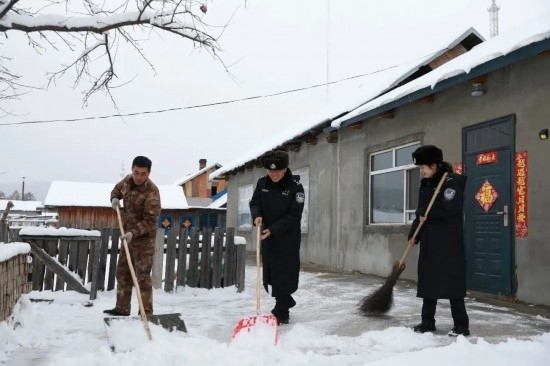 圖為史先強夫妻幫助村民掃雪。