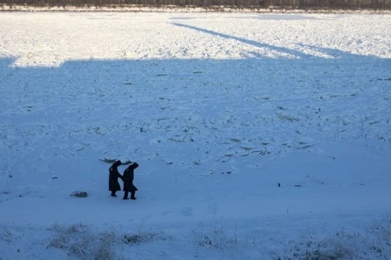 “慢點走,這雪地看著平整,下面還有一層冰?!笔废葟娨贿呎f一邊攙著沈欣慢慢走。沿著江堤一路下坡,走到頭就是黑龍江,江面中間插著國旗標(biāo)識國界。