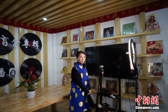 商戶正在直播帶貨。中新網(wǎng)記者 劉湃 攝