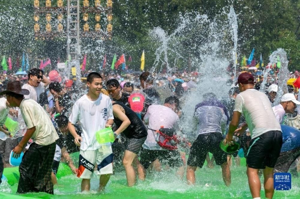 云南省德宏傣族景頗族自治州芒市2023年潑水狂歡節(jié)開(kāi)幕,人們相互潑灑代表幸福、吉祥的清水,表達(dá)著相互間的無(wú)限祝福。