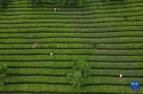茶山上除了辛勤勞作的茶農,游客也紛至沓來,登上高低不同的觀景臺,用鏡頭定格醉人的景、迷人的綠?!安柁r種茶時有講究,之所以種成一排一行、一浪一浪的樣子,一是方便生產作業(yè),二是更有觀賞性?!焙妩h支部書記謝恩安說。