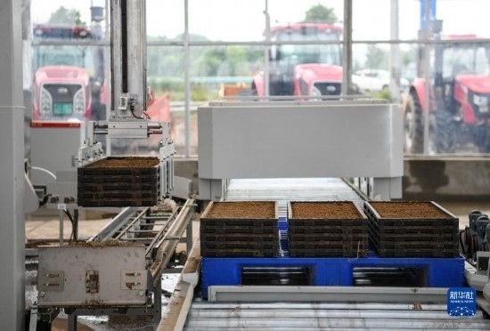 位于成都平原的四川省眉山市彭山區(qū),近年來(lái)加快建設(shè)數(shù)智水稻示范基地,通過(guò)引進(jìn)或定制循環(huán)式智能育秧機(jī)、智能水稻育秧播種流水線、秧盤智能傳輸帶等設(shè)備,提升春耕科技含量,提高生產(chǎn)效率。