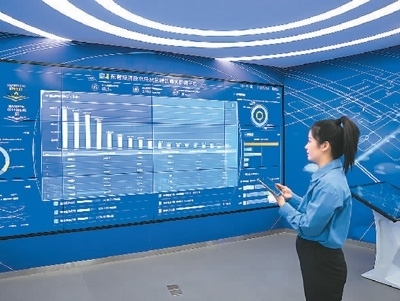 2月24日,在山東省東營(yíng)經(jīng)濟(jì)技術(shù)開發(fā)區(qū)的東營(yíng)工業(yè)互聯(lián)網(wǎng)創(chuàng)新中心,碳排放管理員通過(guò)碳達(dá)峰大數(shù)據(jù)平臺(tái),查看和展示開發(fā)區(qū)企業(yè)實(shí)時(shí)耗能情況。周廣學(xué)攝(人民視覺(jué))