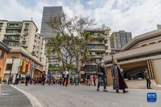 4月28日,重慶市九龍坡區(qū)謝家灣街道民主村片區(qū)城市更新項目(一期)正式竣工亮相,市民游客前來打卡。