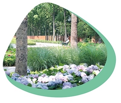 上海市曹家渡花園內,綠化景觀富有層次。 上海靜安園林綠化發(fā)展有限公司提供