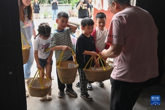 5月4日,小朋友手提竹籃,體驗挨家挨戶“派野米”的習(xí)俗,再用收集到的食材蒸“野米飯”。