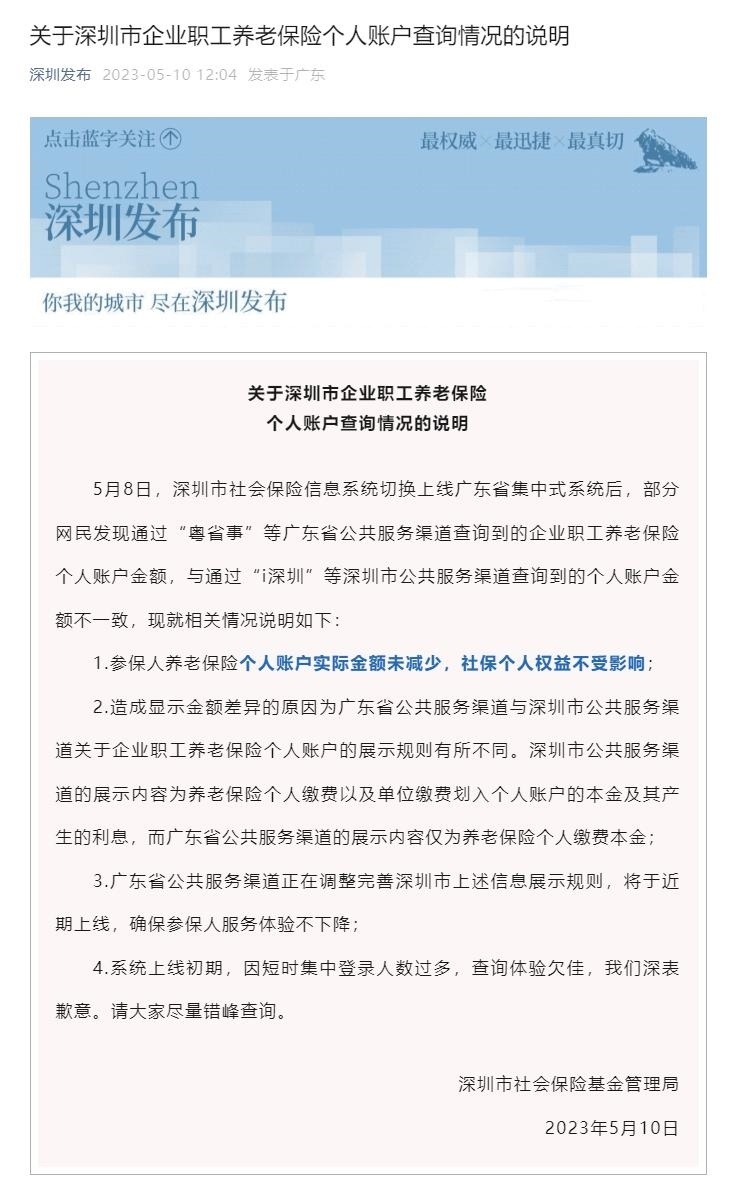 ·深圳社保系統(tǒng)切換,個(gè)人賬戶大幅減少?官方回應(yīng):實(shí)際金額未減少,個(gè)人權(quán)益不受影響。