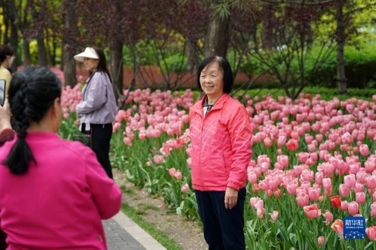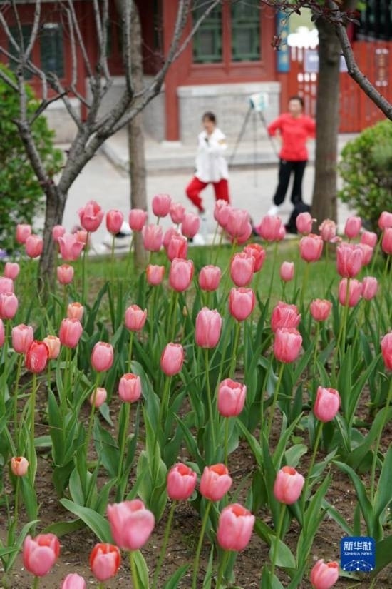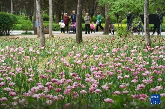 近日,山西省太原市迎澤公園內(nèi)各色郁金香競相綻放,吸引游人前來觀花賞景。