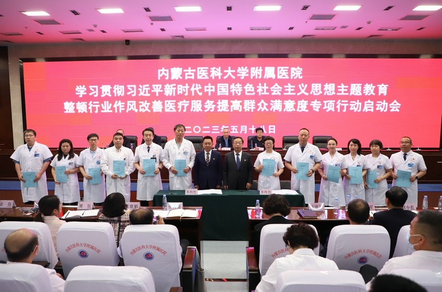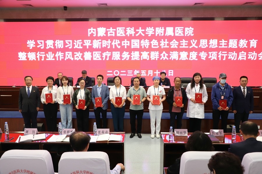 啟動(dòng)會(huì)上,內(nèi)蒙古醫(yī)科大學(xué)黨委委員、附屬醫(yī)院黨委書記張立東,醫(yī)院黨委委員、紀(jì)委書記劉玉龍與專項(xiàng)行動(dòng)工作小組組長(zhǎng)簽訂責(zé)任狀,并為10名社會(huì)監(jiān)督員頒發(fā)聘書。