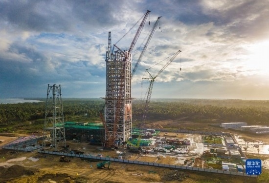 在海南省文昌市拍攝的建設(shè)中的海南商業(yè)航天發(fā)射場1號工位(無人機照片,5月12日攝)。