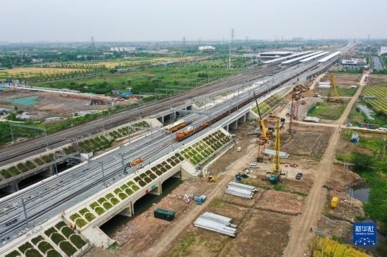 這是5月20日拍攝的滬寧沿江高鐵太倉(cāng)站施工現(xiàn)場(chǎng)(無人機(jī)照片)。