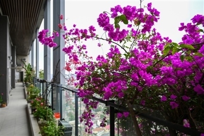 ■ 近來的成都正值春夏交替,一棟被三角梅裝飾的居民樓走紅。照片中,這棟30余層高的居民樓,被繁茂的三角梅所包圍,遠(yuǎn)遠(yuǎn)望去,紫色、粉色的三角梅垂下陽臺,遠(yuǎn)遠(yuǎn)一看就是一面花墻。