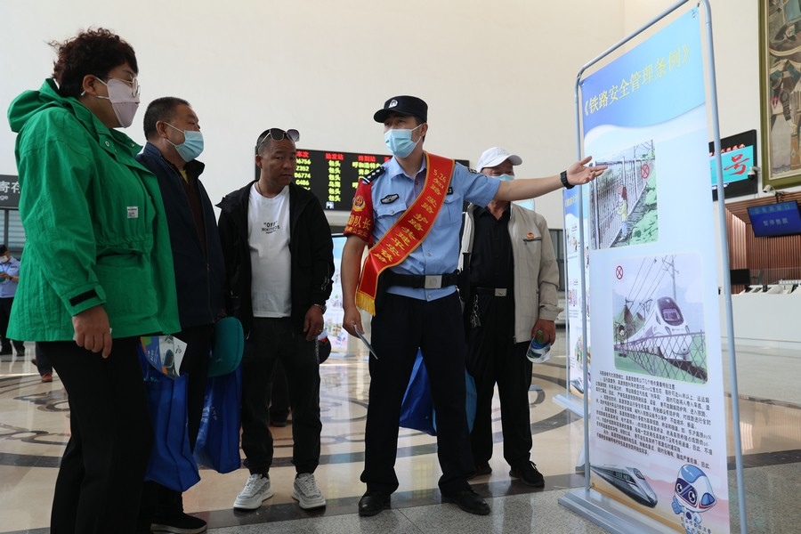 各車站派出所通過發(fā)放宣傳品、知識講解、以案釋法等方式,向廣大旅客群眾宣傳宣講鐵路線路安全知識,提醒大家遵守相關(guān)法律法規(guī)的重要性。