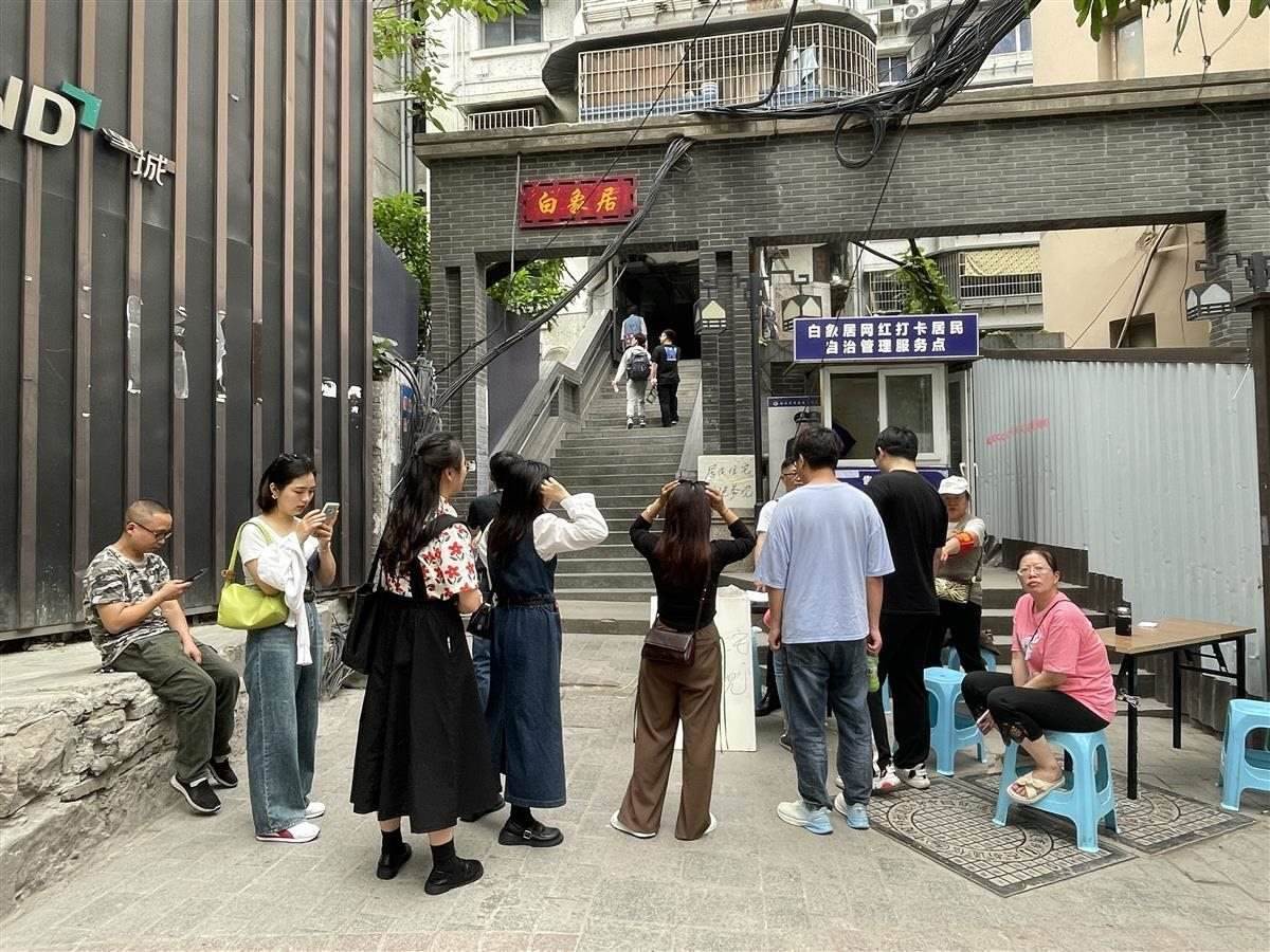 情況說明還顯示,因外來游客太多,居民不堪其擾,5月23日下午,小區(qū)居民自發(fā)組織“居民自治小組”在白象居大門設(shè)置“居民住宅,謝絕參觀”字牌進(jìn)行訪客準(zhǔn)入登記,自發(fā)維護(hù)白象居居民樓內(nèi)部秩序管理,維護(hù)小區(qū)安寧。目前,白象街社區(qū)居委會(huì)已介入居民自治小組的協(xié)調(diào)工作,力爭(zhēng)在游客參觀和居民訴求之間找到一個(gè)平衡點(diǎn)。