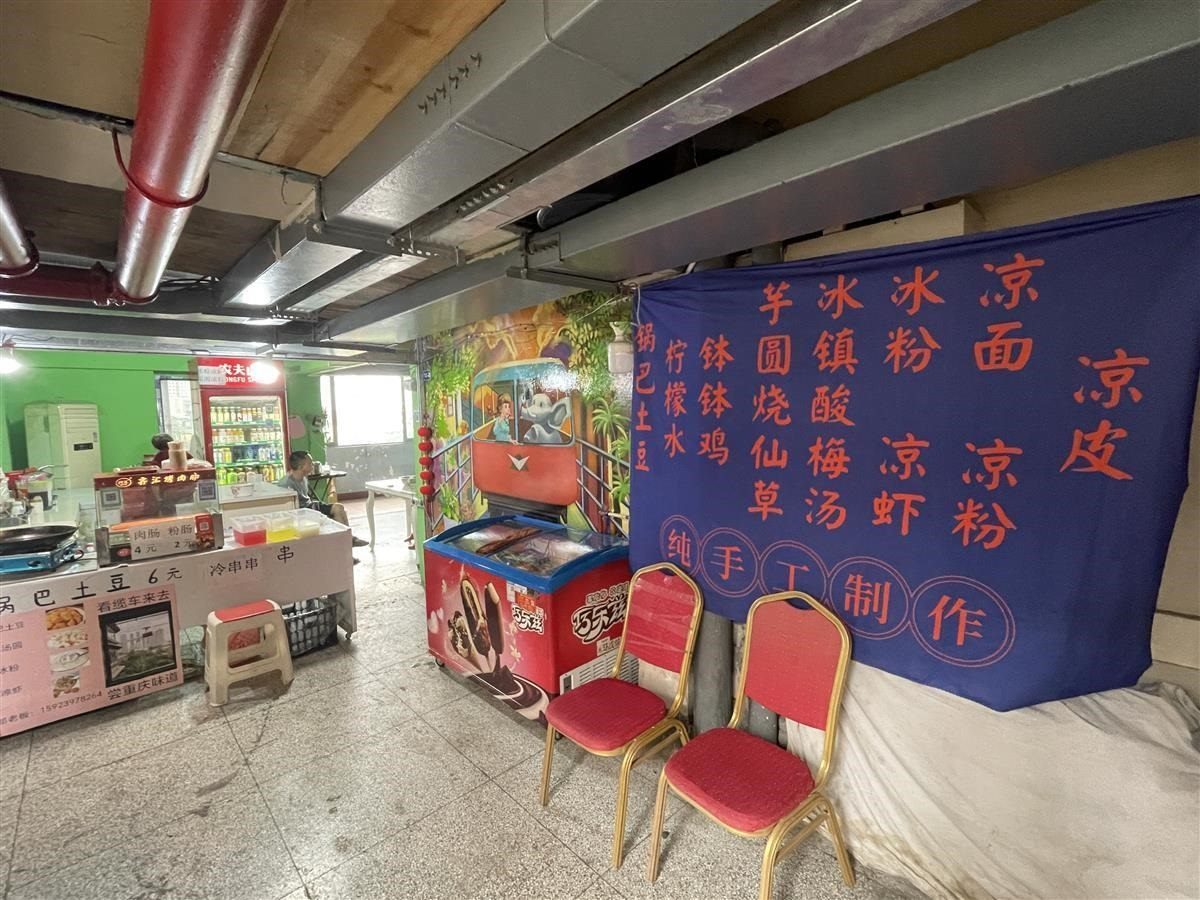 也有居民對(duì)游客持歡迎態(tài)度。從掛有“居民住宅,謝絕參觀”招牌的入口進(jìn)入白象居,是居民樓的第12層,也是游客主要打卡的樓層。這一層均為門面房,白象居居民在這層開有飯店、咖啡店、小賣部等。在12層中間位置開餐館的劉先生告訴極目新聞?dòng)浾撸紫缶?2層以上是居民樓,游客不能進(jìn)去,游客從12樓只能向下到8樓的平臺(tái)位置。從8樓至12樓,很多房屋都被開發(fā)成咖啡屋、民宿等,另有一部分房屋現(xiàn)在還空置出租中。