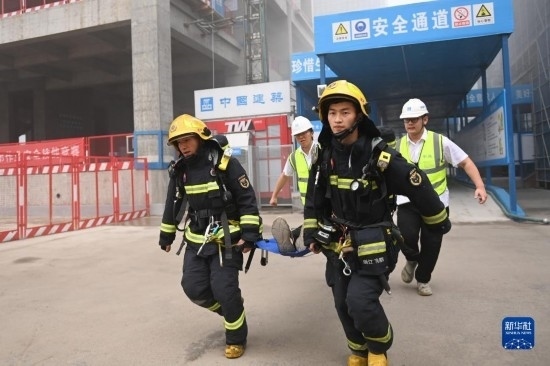 當(dāng)日,浙江省杭州市富陽區(qū)“安全生產(chǎn)月”消防應(yīng)急演練在中建三局富陽銀湖生物信息產(chǎn)業(yè)園項(xiàng)目工地啟動(dòng),現(xiàn)場進(jìn)行火災(zāi)撲救、人員施救等環(huán)節(jié)的演練,以提升安全生產(chǎn)應(yīng)急能力。