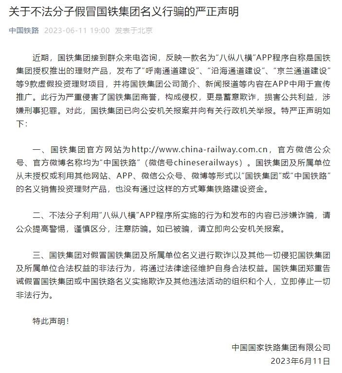 ·APP程序假冒國鐵集團名義行騙,國鐵集團:已報警。