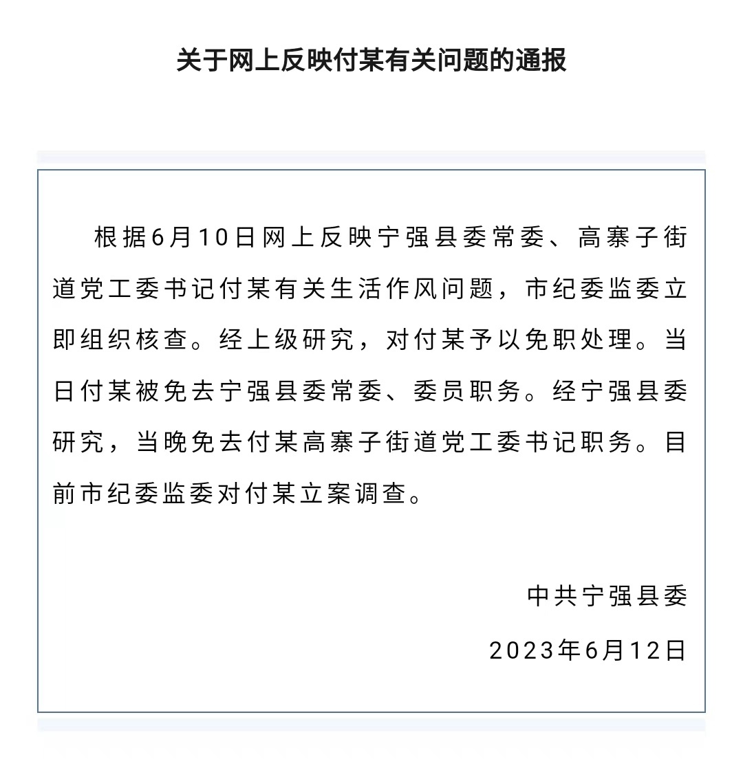 ·官員被舉報(bào)與女同事有不正當(dāng)關(guān)系,陜西寧強(qiáng):免職,立案調(diào)查。