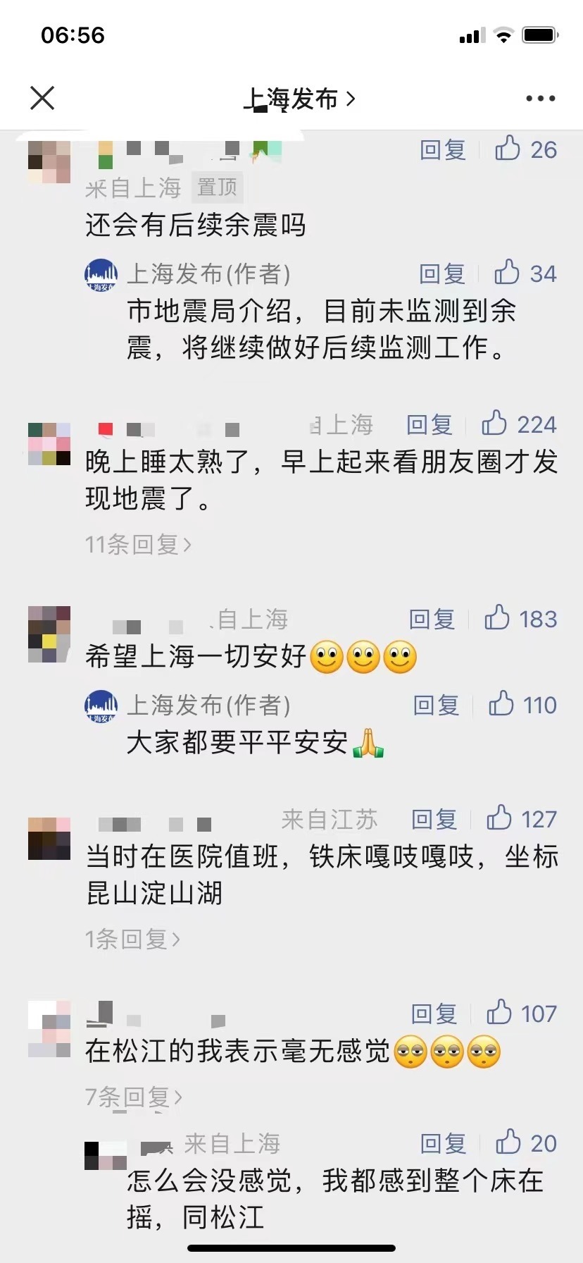 “上海發(fā)布”在微信公眾號(hào)留言中回復(fù):市地震局介紹,目前未監(jiān)測(cè)到余震,將繼續(xù)做好后續(xù)監(jiān)測(cè)工作。