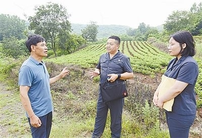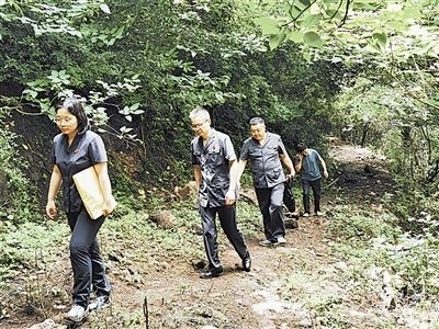 6月20日,安徽省明光市人民法院澗溪人民法庭法官頭頂炎炎烈日,穿越泥濘山道,徒步三公里,登上葛藤窩山,到一起環(huán)境污染責(zé)任糾紛案的現(xiàn)場查看樹木受損情況。