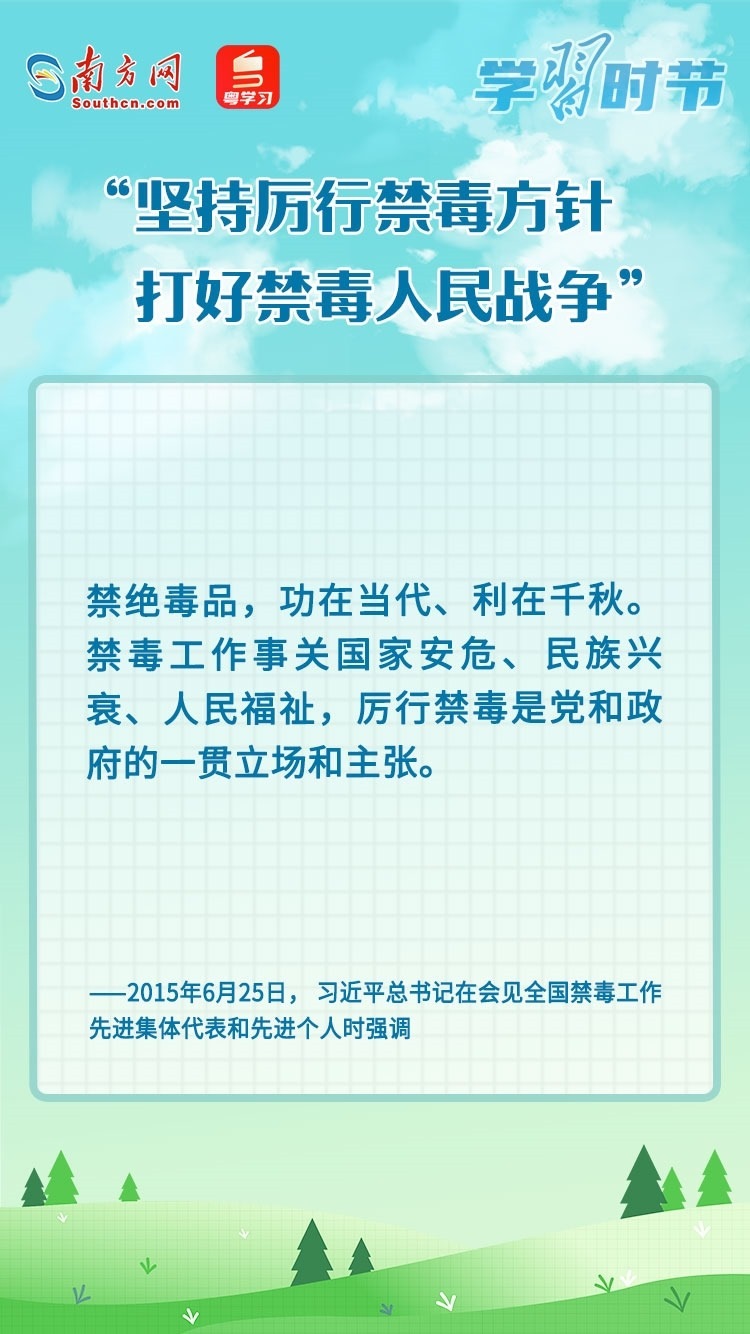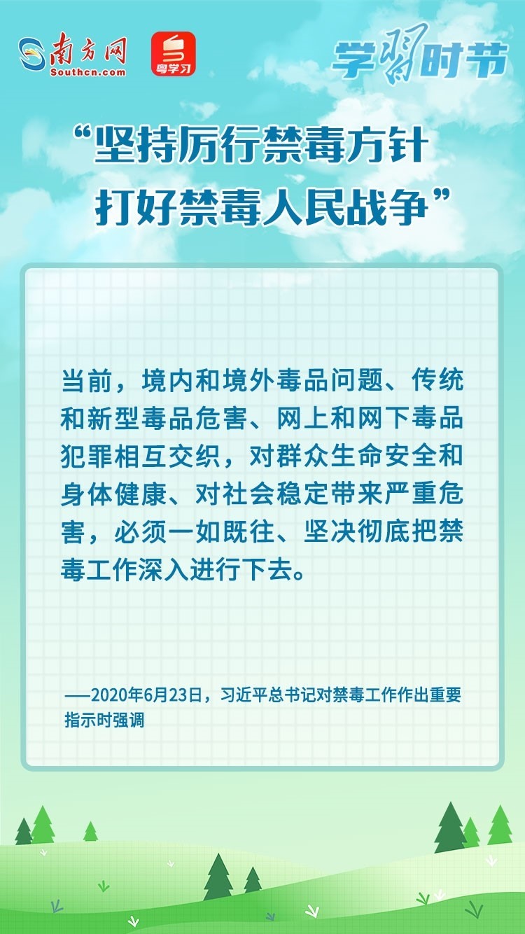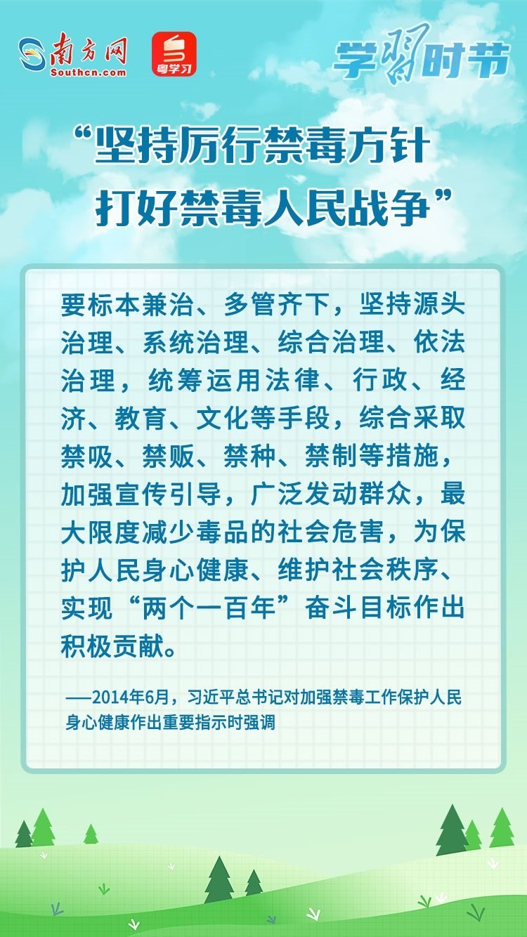 毒品一日不絕,禁毒一刻不止。今年6月26日是第36個國際禁毒日,讓我們在深入學(xué)習(xí)習(xí)近平總書記的重要論述中,不斷增強(qiáng)禁毒意識和防范能力,掌握禁毒工作的深刻意義,堅(jiān)定打贏禁毒人民戰(zhàn)爭的信心和決心。