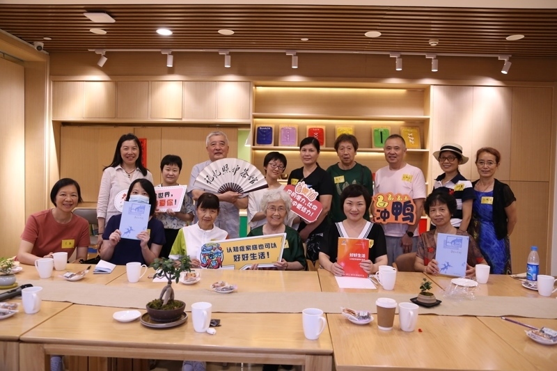 她希望能給他們提供彼此支持、交流經(jīng)驗的社交平臺。而她也漸漸發(fā)現(xiàn)最了解家屬需求的是他們自己。為什么不能由家屬自己來決定討論什么呢?于是,2020年,汪達(dá)民與顧春玲一拍即合,在延續(xù)國外“記憶咖啡館”理念的基礎(chǔ)上,開創(chuàng)了本土特色的認(rèn)知癥家屬互助平臺:照護(hù)茶館。畢竟,茶館就是熱鬧的、七嘴八舌的,人們來這里消遣娛樂,釋放壓力。在照護(hù)茶館里,家屬們既是掌柜也是茶客,分享各種照護(hù)信息,這也是認(rèn)知癥患者照護(hù)者們希望得以喘息的方式。