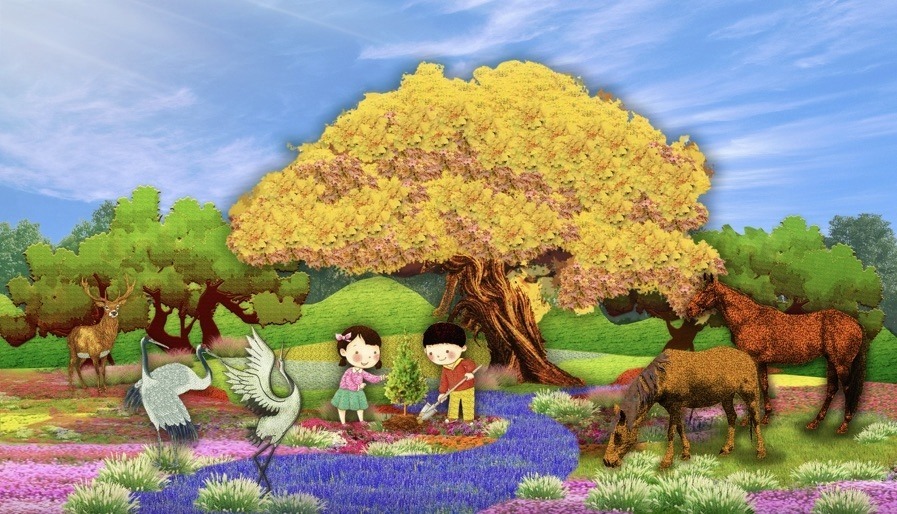 4,東單西北角的“和諧共生”花壇頂高8.5米,“三北工程”綠色長(zhǎng)城為主景,配以野馬(西北)、麋鹿(華北)、白鶴(東北)、胡楊等典型物種,體現(xiàn)了生態(tài)治理的典范,寓意堅(jiān)定不移走好人與自然和諧共生的中國式現(xiàn)代化之路。