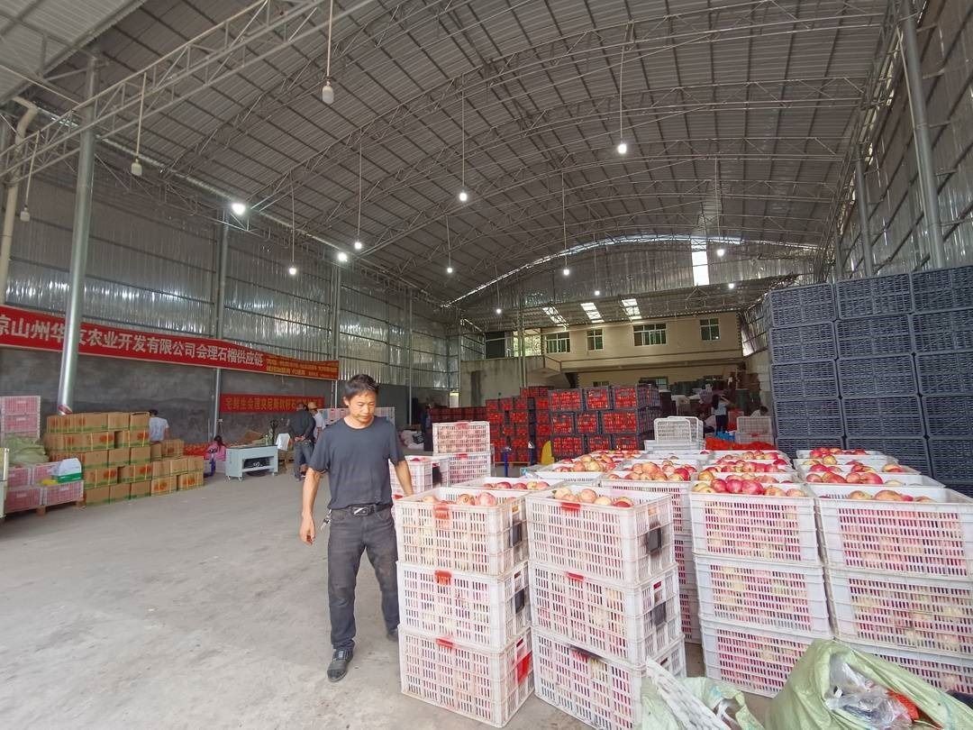 △倉(cāng)庫(kù)中等待裝箱發(fā)貨的石榴