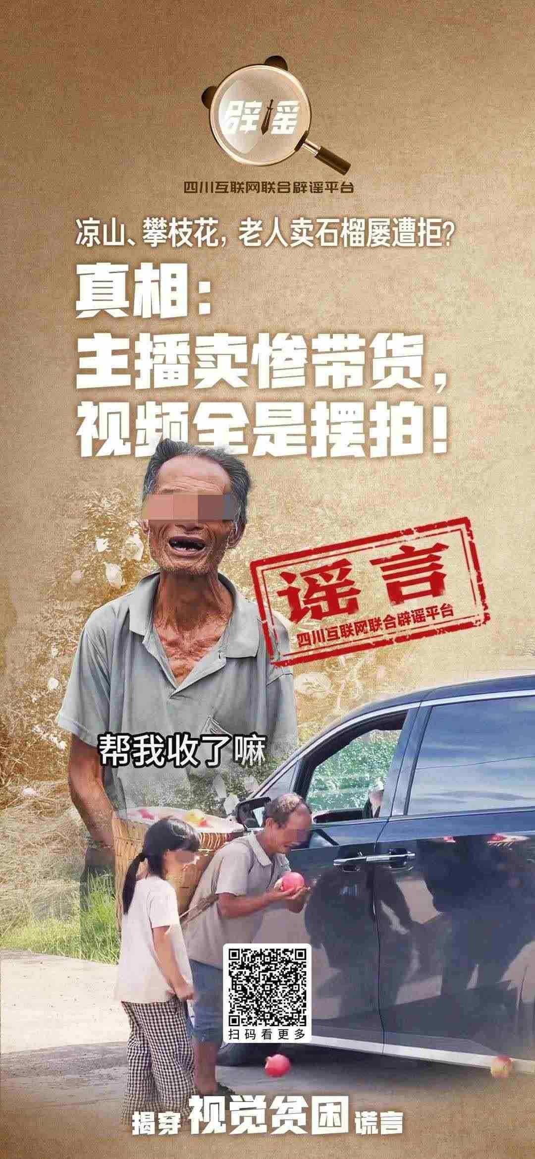 連日來(lái),四川互聯(lián)網(wǎng)聯(lián)合辟謠平臺(tái)、封面新聞?dòng)浾咦咴L了涼山州會(huì)理市、攀枝花市仁和區(qū)的石榴產(chǎn)區(qū),輾轉(zhuǎn)尋找到了上述視頻中的多名老人后發(fā)現(xiàn),這些熱門(mén)視頻的背后,實(shí)則為“賣慘帶貨”的營(yíng)銷套路。