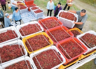 河南省洛陽(yáng)市宜陽(yáng)縣柳泉鎮(zhèn)沙漠村,村民在收獲花椒。 田義偉攝(人民視覺(jué)) |