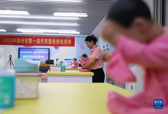 這是7月8日拍攝的托育服務(wù)技能競(jìng)賽現(xiàn)場(chǎng)。
