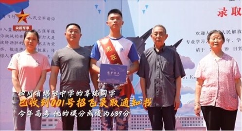2023年度空軍首批招飛錄取通知書發(fā)放。收到001號錄取通知書的是四川省綿陽中學的辜瑞同學。今年高考,他的裸分成績?yōu)?39分,有望入圍空軍與北京大學、清華大學、北京航空航天大學聯(lián)合培養(yǎng)“雙學籍”飛行學員預(yù)選對象。
