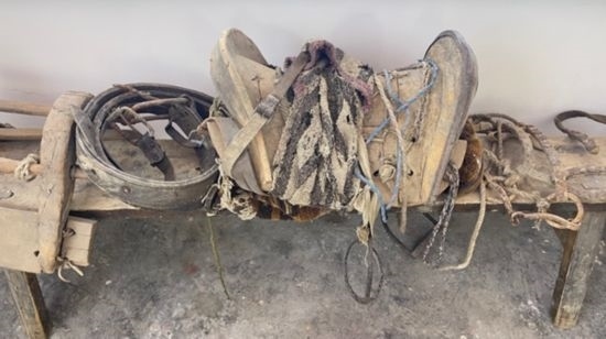 圖為五里村村史館展覽的過(guò)去運(yùn)輸貨物和生活必需品上山的馬駝?dòng)镁摺P氯A網(wǎng) 陳穎 攝