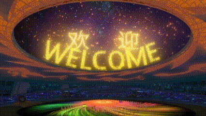 當(dāng)宣布本屆世界大學(xué)生運動會開幕時,空中金色焰火熱烈綻放,隨后空中出現(xiàn)“歡迎”“WELCOME”字樣,隨著大運會火炬塔被點燃,焰火在空中打出成都第31屆世界大學(xué)生夏季運動會U形會徽,體育場上空焰火呈現(xiàn)英文“Make Dreams Come True”,命運與共,成就夢想。