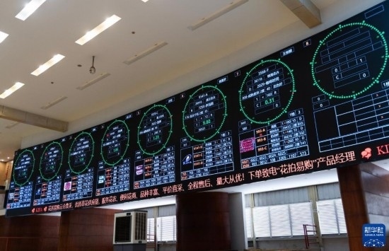 競拍者在昆明國際花卉拍賣交易中心拍賣大廳參與鮮花競拍(7月13日攝)。新華社記者 陳欣波 攝
