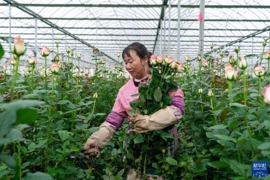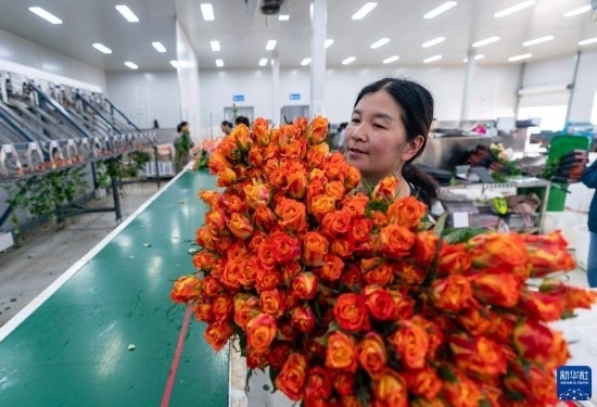 清晨,在云南省昆明市晉寧區(qū)云天化晉寧花卉產(chǎn)業(yè)現(xiàn)代化示范園內(nèi),品類各異的鮮花競相綻放,花農(nóng)們在現(xiàn)代化大棚里忙著采摘、搬運。云天化晉寧花卉產(chǎn)業(yè)現(xiàn)代化示范園是集育苗、智能溫室大棚、水肥一體化、無土綠色栽培、全程數(shù)字化管理系統(tǒng),以及鮮切花采后處理、預(yù)冷儲藏等為一體的高標(biāo)準(zhǔn)設(shè)施農(nóng)業(yè)產(chǎn)業(yè)園區(qū),年產(chǎn)鮮切花1.6億枝。