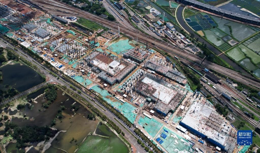 海口新海港和南港“二線口岸”(貨運(yùn))集中查驗(yàn)場(chǎng)所建設(shè)項(xiàng)目(7月21日攝,無(wú)人機(jī)照片)。