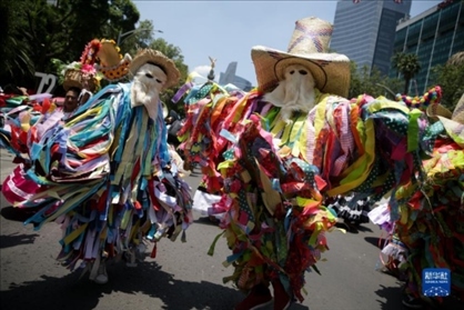 8月9日,在墨西哥首都墨西哥城,演員身著傳統(tǒng)服飾參加世界土著人民國(guó)際日慶?;顒?dòng)。1994年聯(lián)合國(guó)大會(huì)通過(guò)決議,將每年8月9日定為世界土著人民國(guó)際日。
