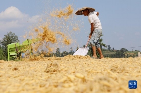 立秋以來,貴州、湖南等地農(nóng)民搶抓晴好天氣,晾曬收獲的作物。