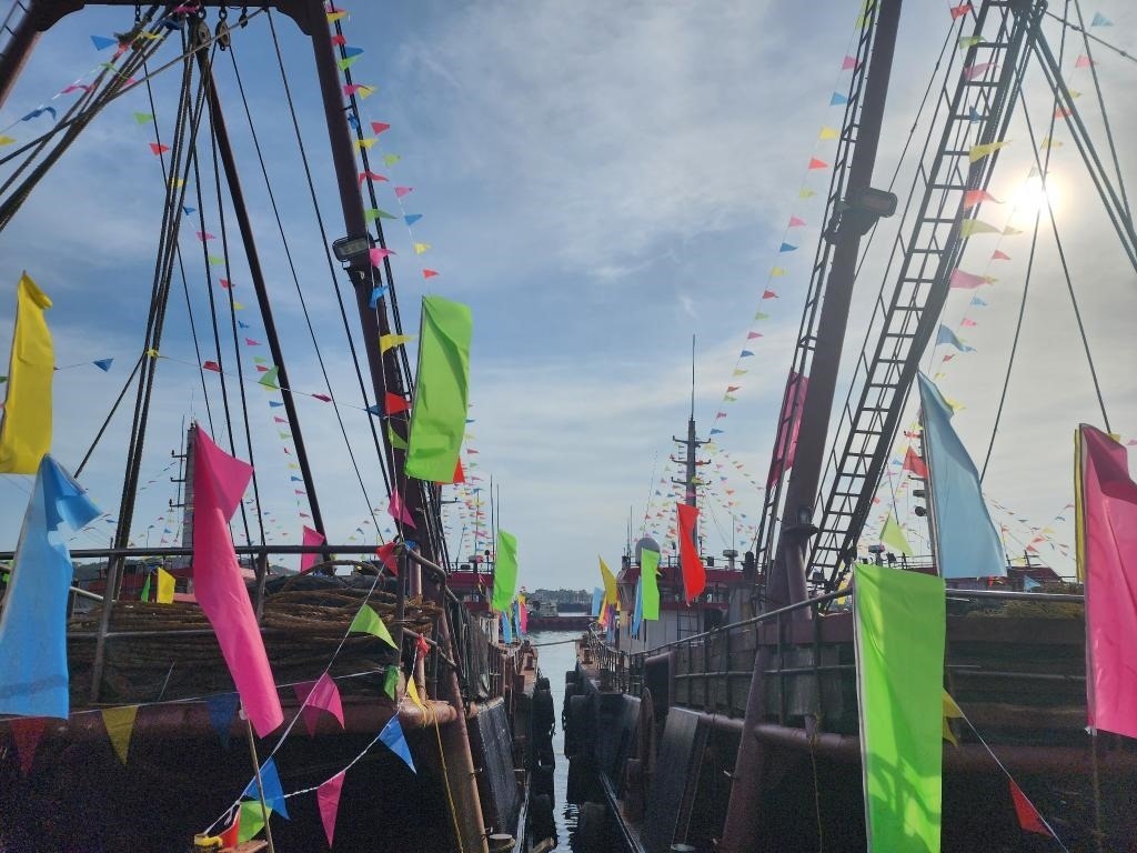 8月16日上午,溫潤(rùn)的海風(fēng)輕拂海面,一排排漁船停靠在閘坡港海灣,汽笛聲陣陣起伏。休息了三個(gè)半月的漁民鄭建華坐在船頭,正翹首以盼正午時(shí)分開漁號(hào)角的吹響。