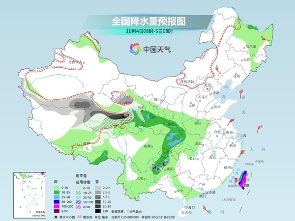 中國天氣網(wǎng)訊 今天(10月3日)白天,華西地區(qū)降雨將有所減少、減弱,但今夜起新一輪降雨過程又將開啟,部分地區(qū)有大雨,局地暴雨;同時青海、甘肅局地有暴雪或大暴雪,需注意防范。氣溫方面,東北地區(qū)等地未來三天將出現(xiàn)降溫。5日至7日,南方氣溫也將下滑,暑熱緩解。