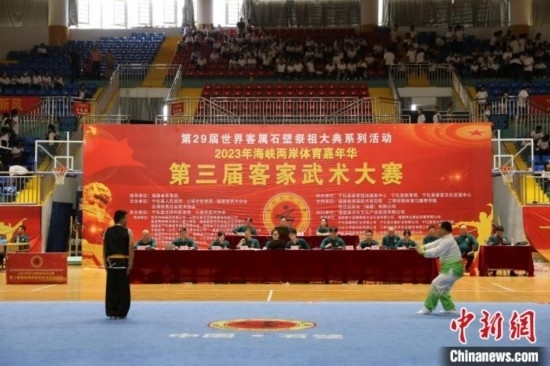 5日,第三屆客家武術(shù)大賽在福建省三明市寧化縣體育中心開(kāi)賽,來(lái)自福建、江西、臺(tái)灣等地武術(shù)團(tuán)體、武術(shù)協(xié)會(huì)33支隊(duì)伍、500多名武術(shù)愛(ài)好者參加比賽。