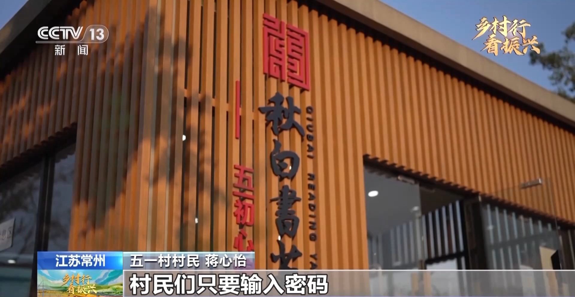 江蘇常州五一村村民 蔣心怡:我叫蔣心怡,是個(gè)土生土長的五一村人。今天我想帶大家去看看我們村的秋白書苑。這個(gè)圖書館24小時(shí)免費(fèi)開放,村民們只要輸入密碼,就可自由進(jìn)出。
