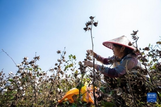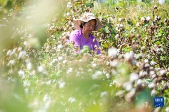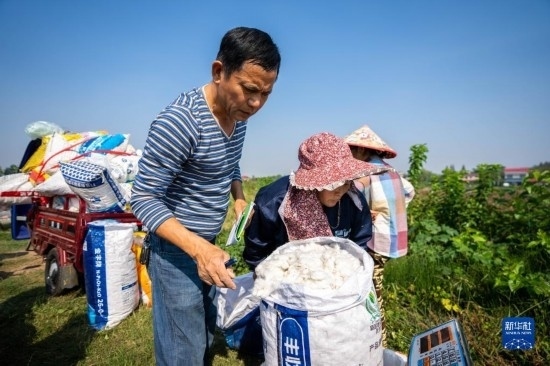 金秋十月,湖南省益陽市南縣種植的4萬余畝棉花相繼進入采收季,當?shù)孛揶r趁著晴好天氣采摘棉花,田間地頭一片忙碌的景象。