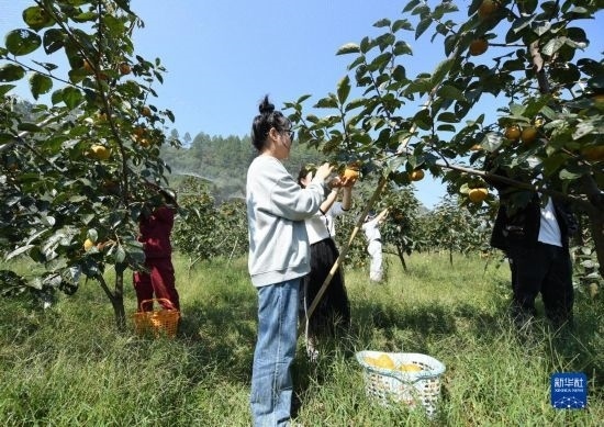 10月18日,在浬浦鎮(zhèn)盤山村,游客采摘從國外引進的甜柿。