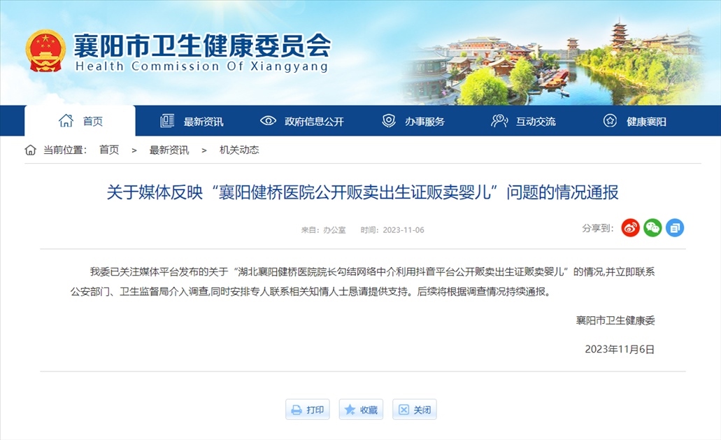 ·醫(yī)院院長被舉報(bào)涉嫌販賣出生證,襄陽衛(wèi)健委通報(bào):聯(lián)系公安部門、衛(wèi)生監(jiān)督局介入調(diào)查,同時(shí)安排專人聯(lián)系相關(guān)知情人士懇請?zhí)峁┲С帧:罄m(xù)將根據(jù)調(diào)查情況持續(xù)通報(bào)。