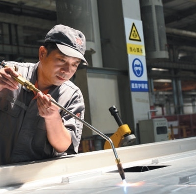 周晶輝正在對鋁合金車體進(jìn)行焊接。金萬寶攝