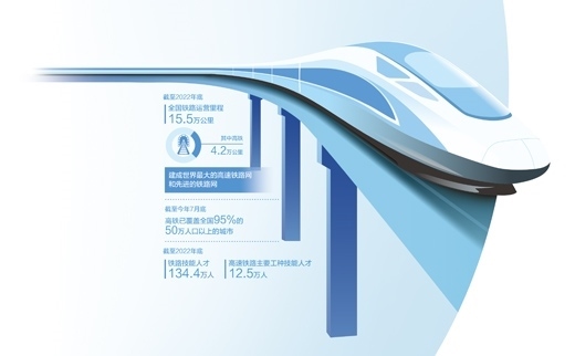 鐵路密布,高鐵飛馳,天塹變通途;以軌為尺,乘風(fēng)而行,天涯若比鄰。據(jù)統(tǒng)計(jì),2022年,全國新增高鐵里程2082公里,年末里程達(dá)到4.2萬公里,均穩(wěn)居世界首位。